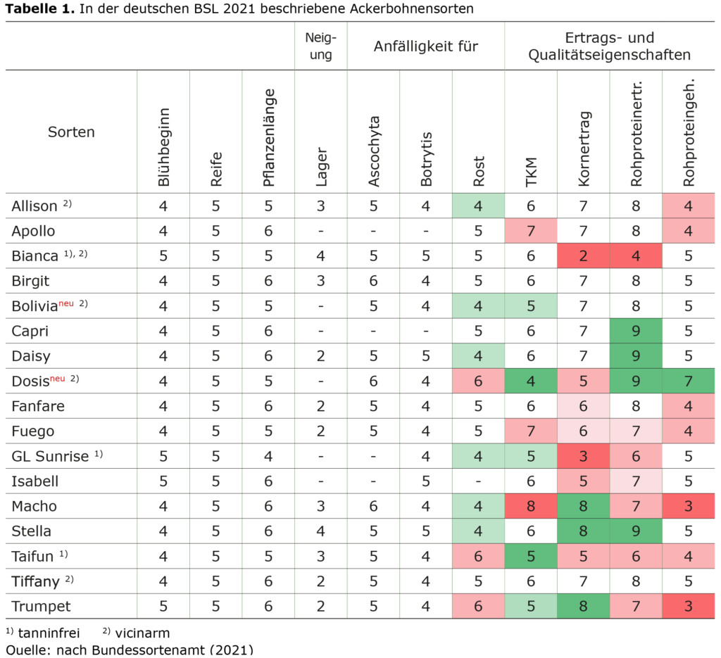 Sortenwahl bei Sommerackerbohnen