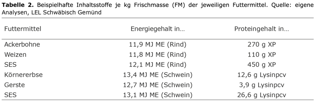 Bewertung von Ackerbohne und Erbse als Futtermittel