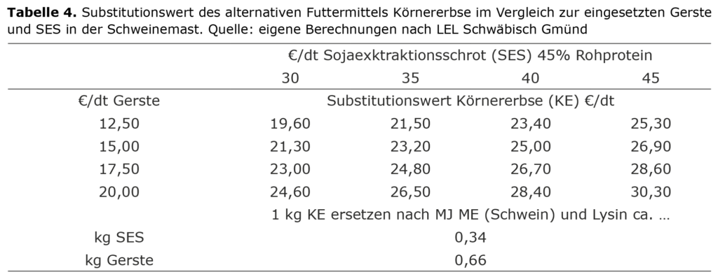 Um die Eiweißversorgung in der Schweinemast zu gewährleisten, wird überwiegend Sojaextraktionsschrot eingesetzt. Allerdings bietet die Fütterung von anderen Körnerleguminosen, wie zum Beispiel Erbse oder Ackerbohne, eine regionale Alternative zur bedarfsgerechten Aminosäureversorgung der Tiere. Besonders rentabel ist dieses Modell beim Anbau dieser Kulturpfl...