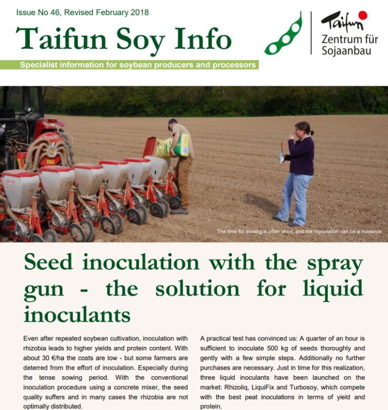 Selbst nach wiederholtem Sojaanbau führt eine Impfung mit Rhizobien zu höheren Erträgen und Eiweißgehalten. Mit rund 30 €/ha sind die Kosten gering - mancher Landwirt lässt sich jedoch vom Aufwand der Impfung abschrecken, zumal in der angespannten Aussaatzeit. Bei dem herkömmlichen Impfverfahren im Betonmischer leidet zudem die Saatgutqualität, und vielfach ...