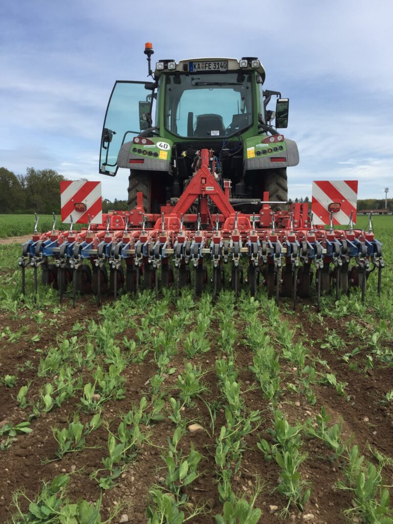 Mechanische Unkrautregulierung bei Erbsen