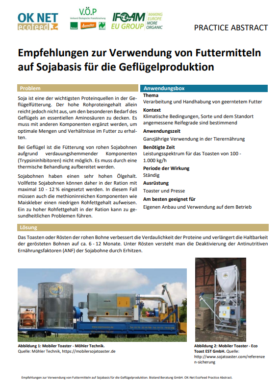 In Deutschland wird insbesondere in der Schweine- und Geflügelfütterung nach wie vor ein großer Anteil des Proteinfutterbedarfs aus Importsoja gedeckt. Zum Großteil wird das Soja aus den USA, Argentinien und Brasilien importiert und ist gentechnisch verändert. Körnerleguminosen wie Ackerbohne und Körnererbse haben neben Rapsextraktionsschrot das Potential, S...