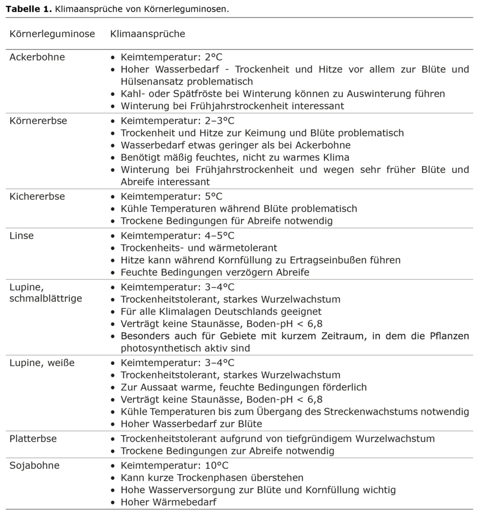 Körnerleguminosen: Klimawandel und Klimaansprüche