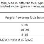 For poultry feed, only low vicine/convicine faba bean cultivars should be used. Using standard vicine/convicine containing cultivars, there is a decline in performance when inclusion rates exceed 10%.