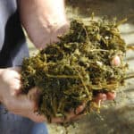 There a number of simple tests that can be used to estimate forage dry matter content. The first is hand squeezing a small ball of lucerne cut into 1–2 cm lengths. The dry matter is about 30–40% when the ball falls apart slowly with no free moisture and little moisture on the hand. When the ball springs apart quickly the dry matter is over 40%. This can also be estimated with a microwave oven.