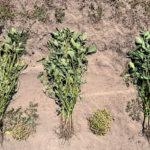 На ділянці з раннім просапуванням кількість рослин практично вдвічі менше. Можливо, через надто агресивне просапування на ранній стадії. Водночас тут соя має більше гілок і практично ту саму кількість бобів з одиниці площі. Врожай на обох ділянках однаковий.