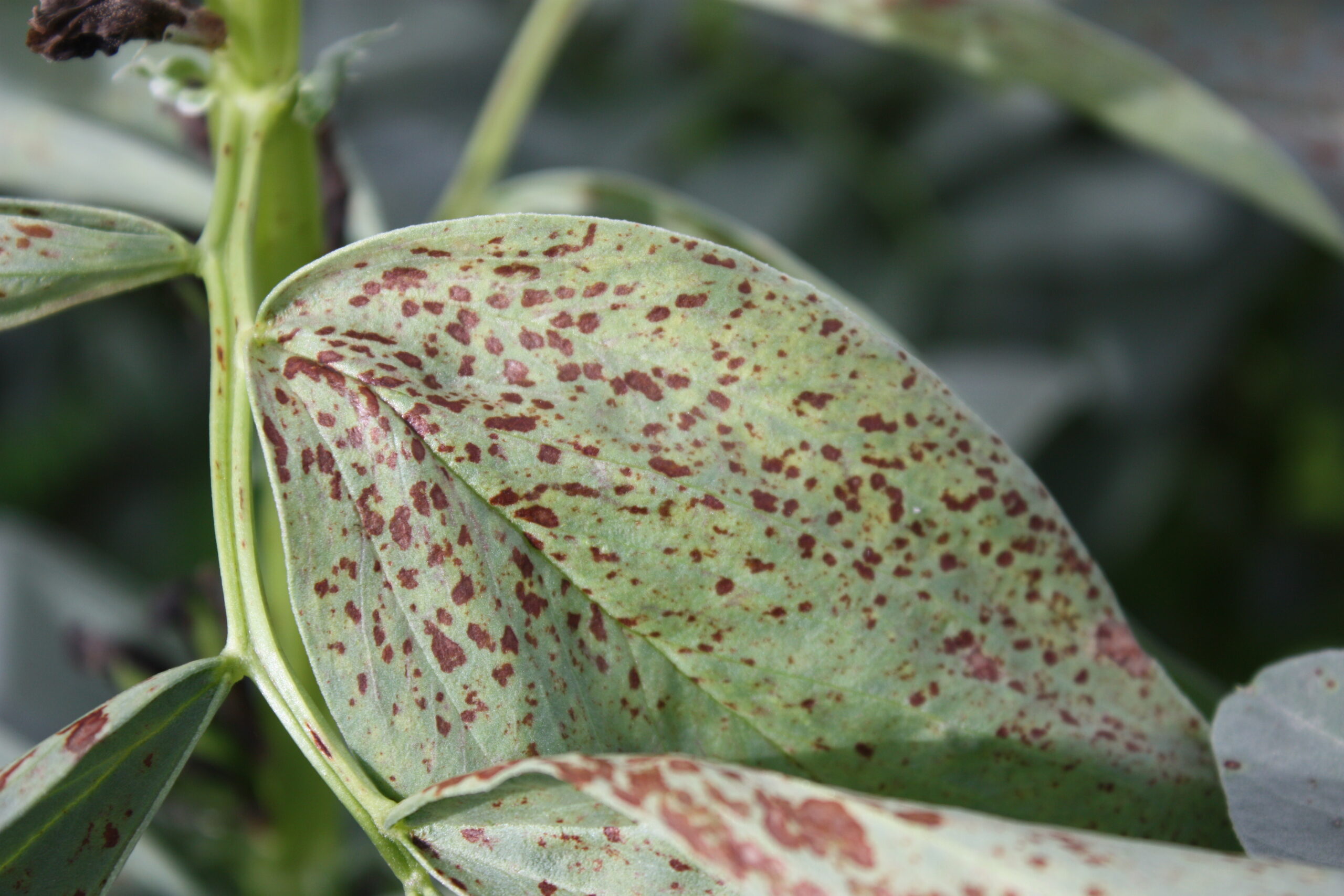 DescriptionFaba bean leaf with chocolate spot disease Botrytis fabae.
