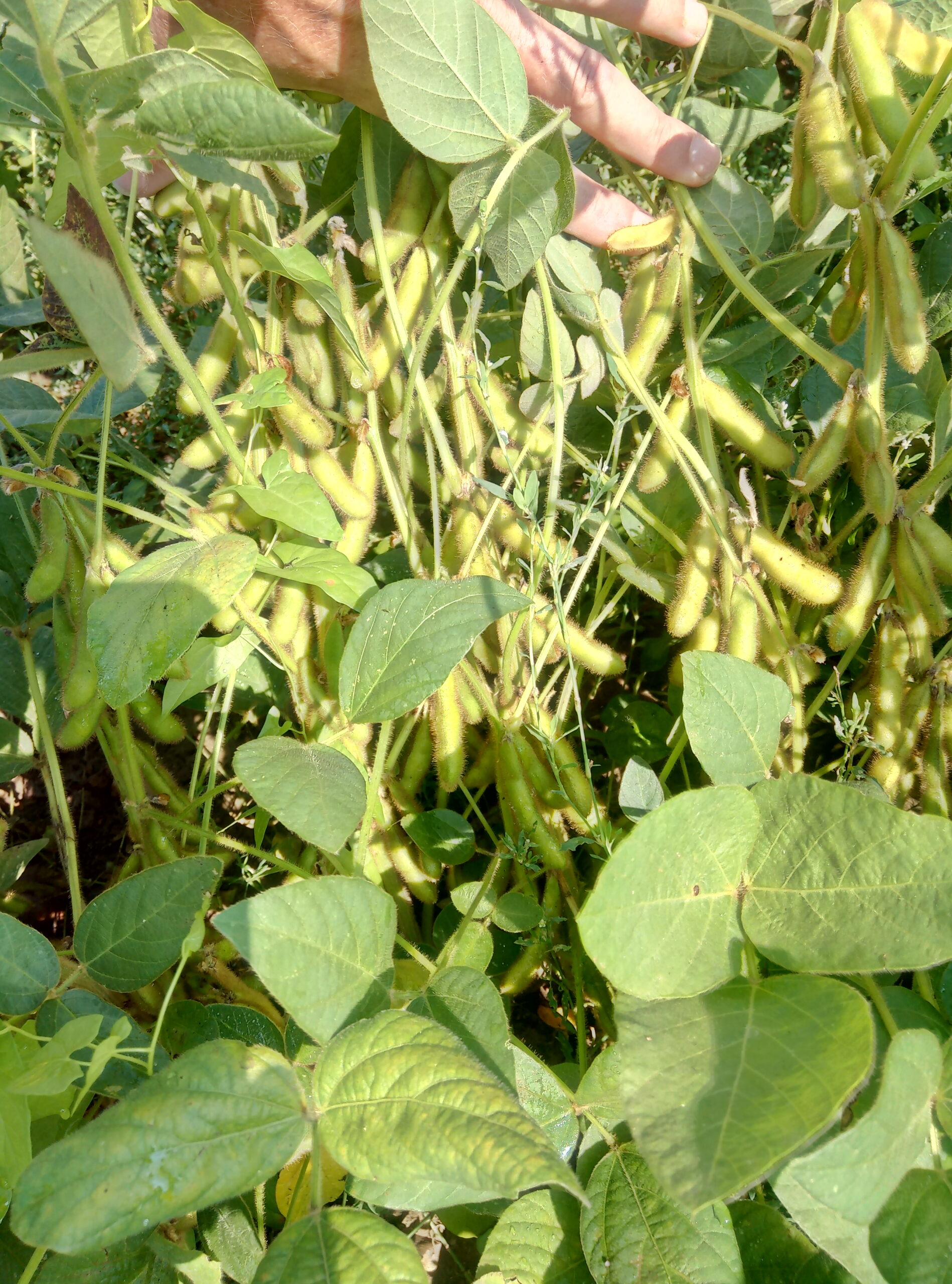 DescriptionSoybean crop with damage after hail and damage from painted lady butterfly Vanessa cardui.