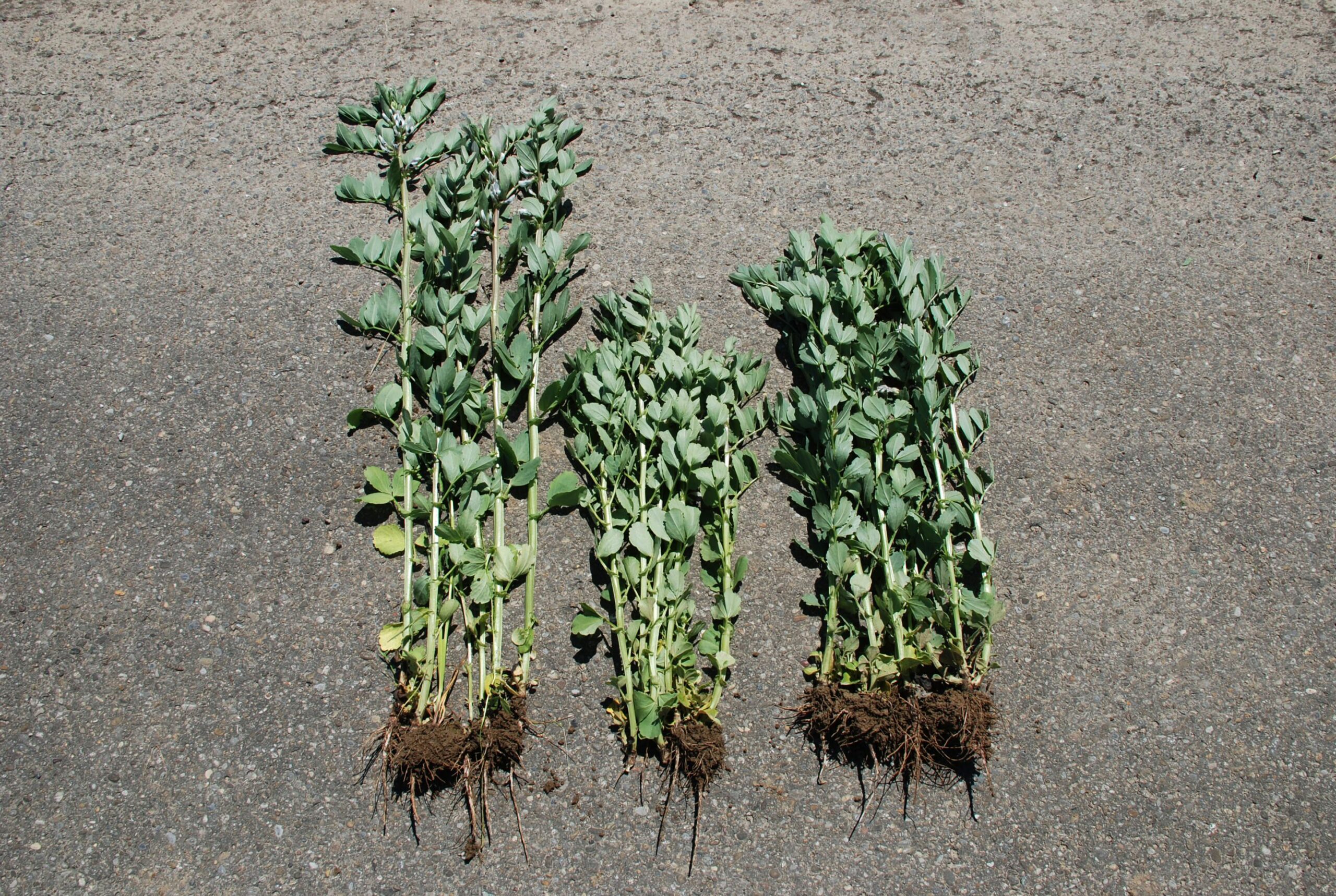 DescriptionThe image shows different faba bean varieties. On the left is the variety Diva, in the middle is Hiverna and on the right is the variety Olan.