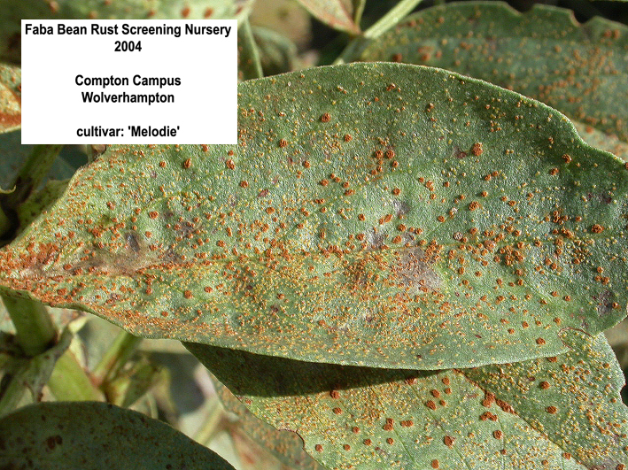 DescriptionFabva bean leaf with rust disease Uromyces viciae-fabae.