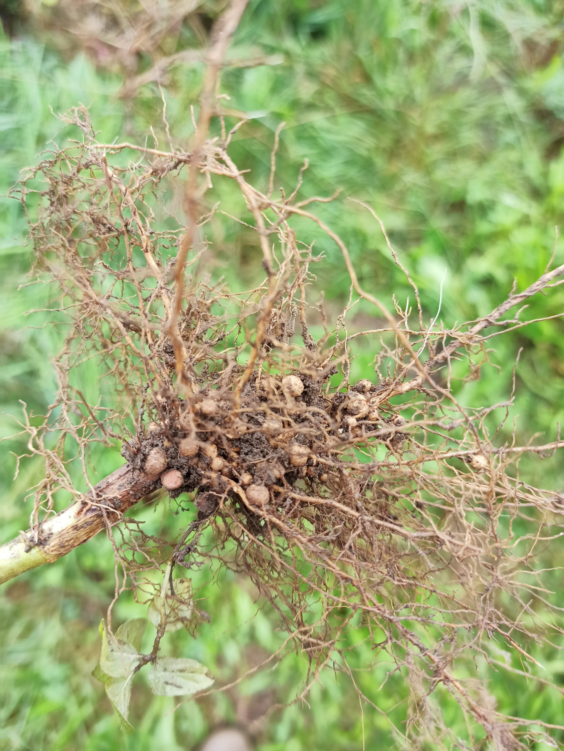 DescriptionEdamame, variety Green Hokkai, Glycine max. Inoculated and planted in May, picture taken in August.