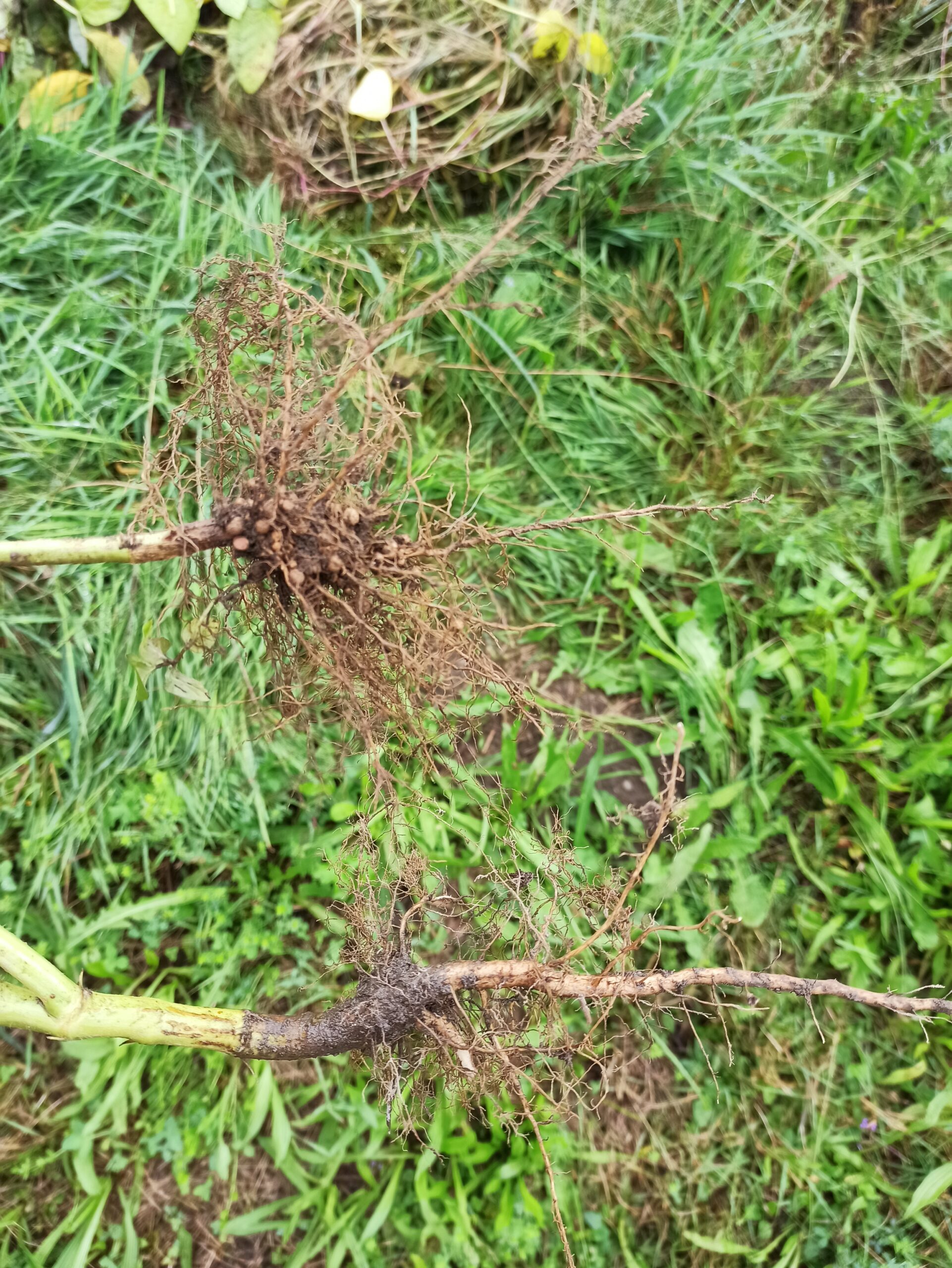 DescriptionComparison of roots from inoculated and not inoculated soybean plant. Same variety, same location (50m distance) Green Hokkai, Edamame, Glycine max.