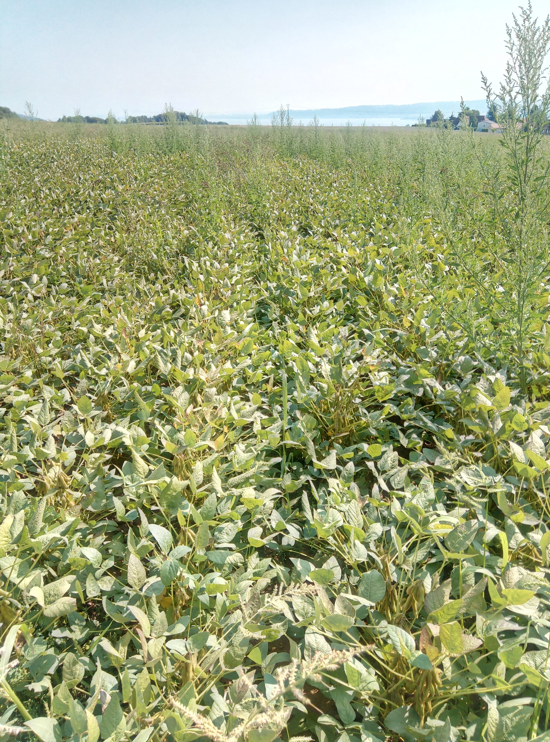 DescriptionSoy crop after hail damage and painted lady butterfly Vanessa cardui.