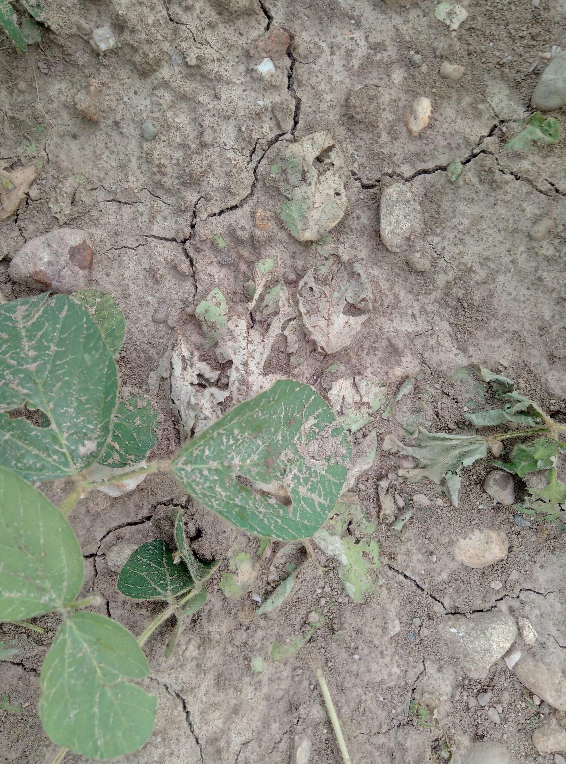DescriptionSoy crop damage after hail and Vanessa cardui.