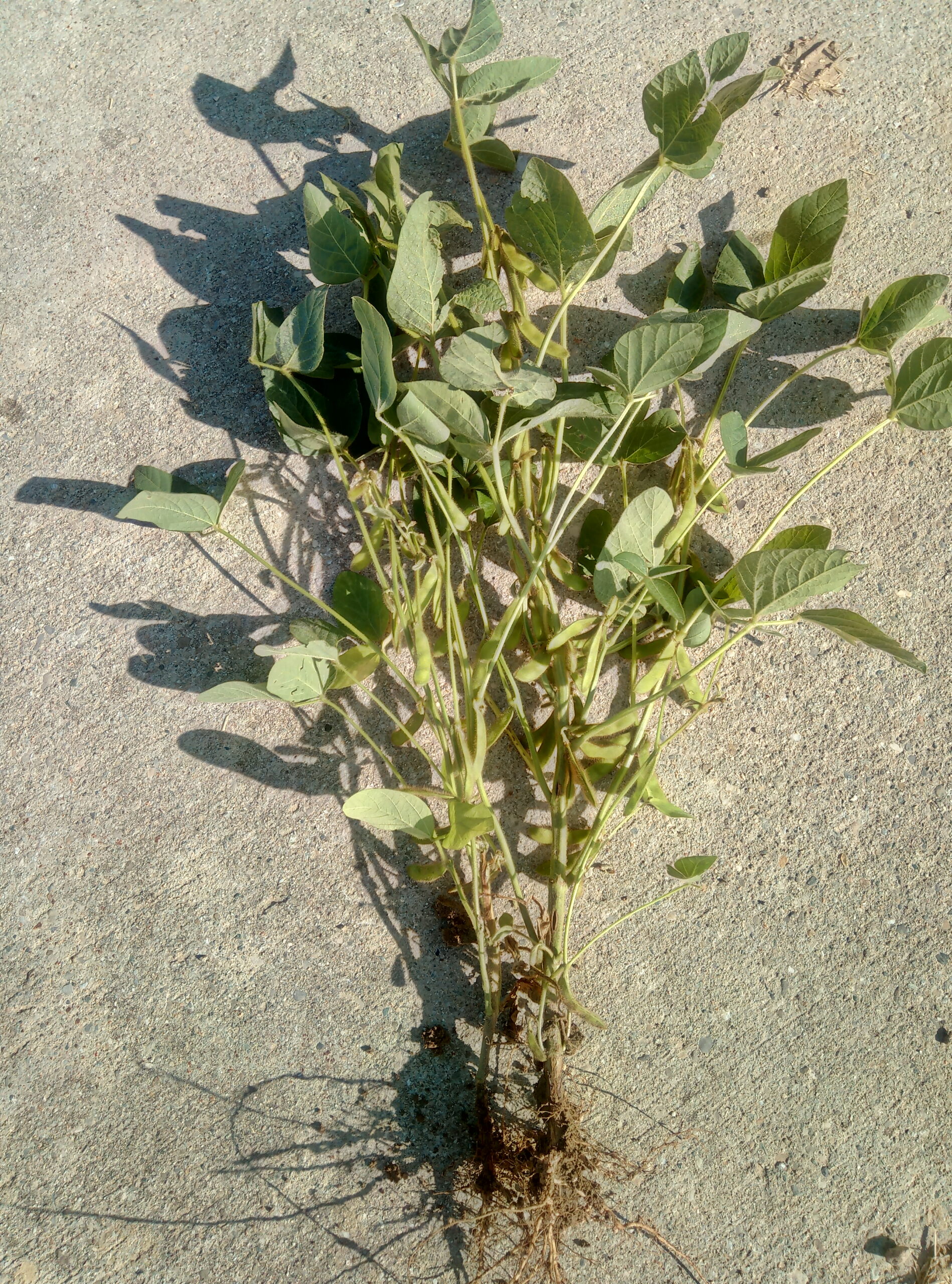 DescriptionSoy plant with roots after hail.