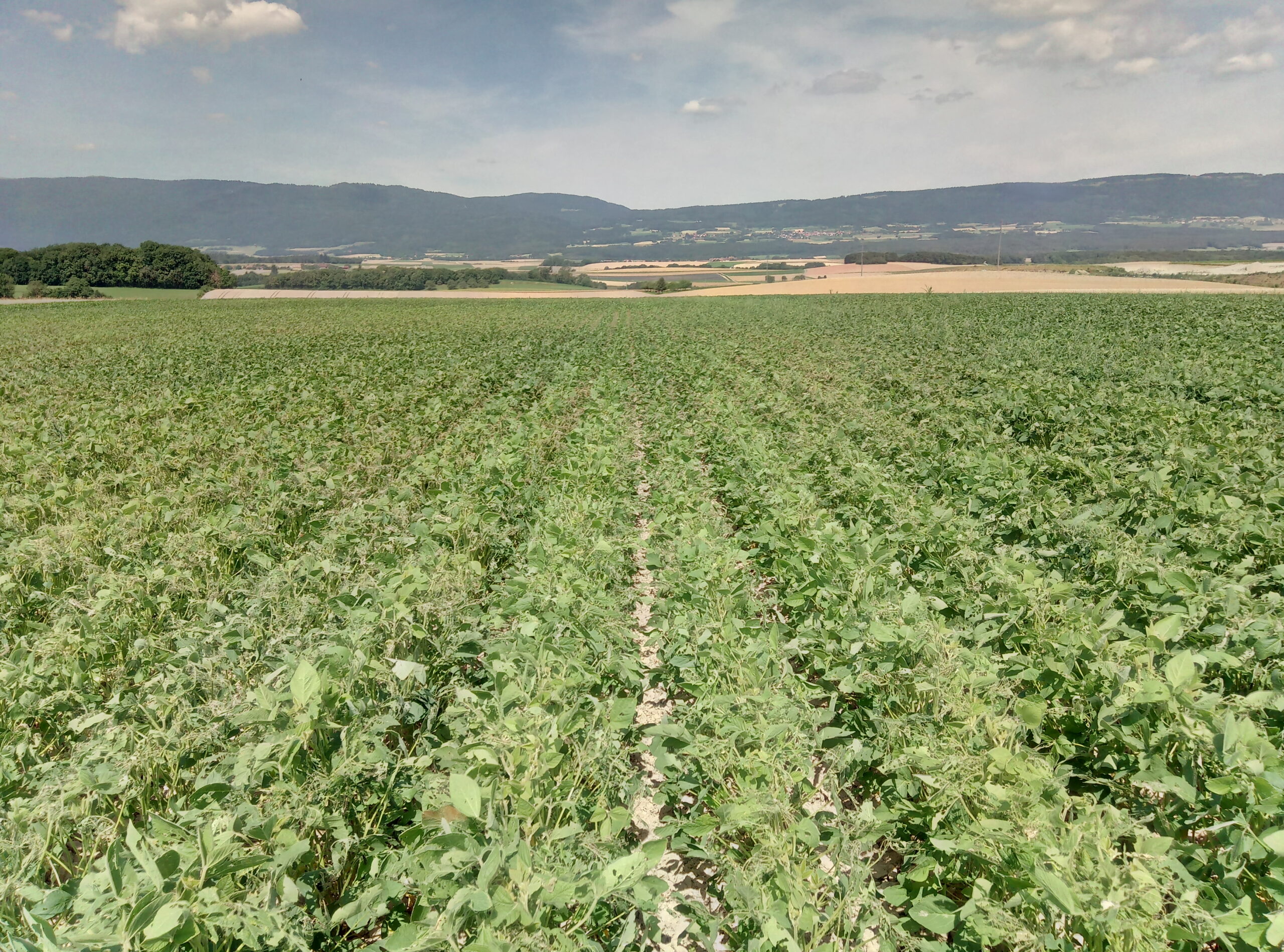 DescriptionSoybean crop with damage from Vanessa cardui.