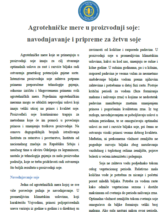 Agrotehničke mere u proizvodnji soje: navodnjavanje i pripreme za žetvu soje